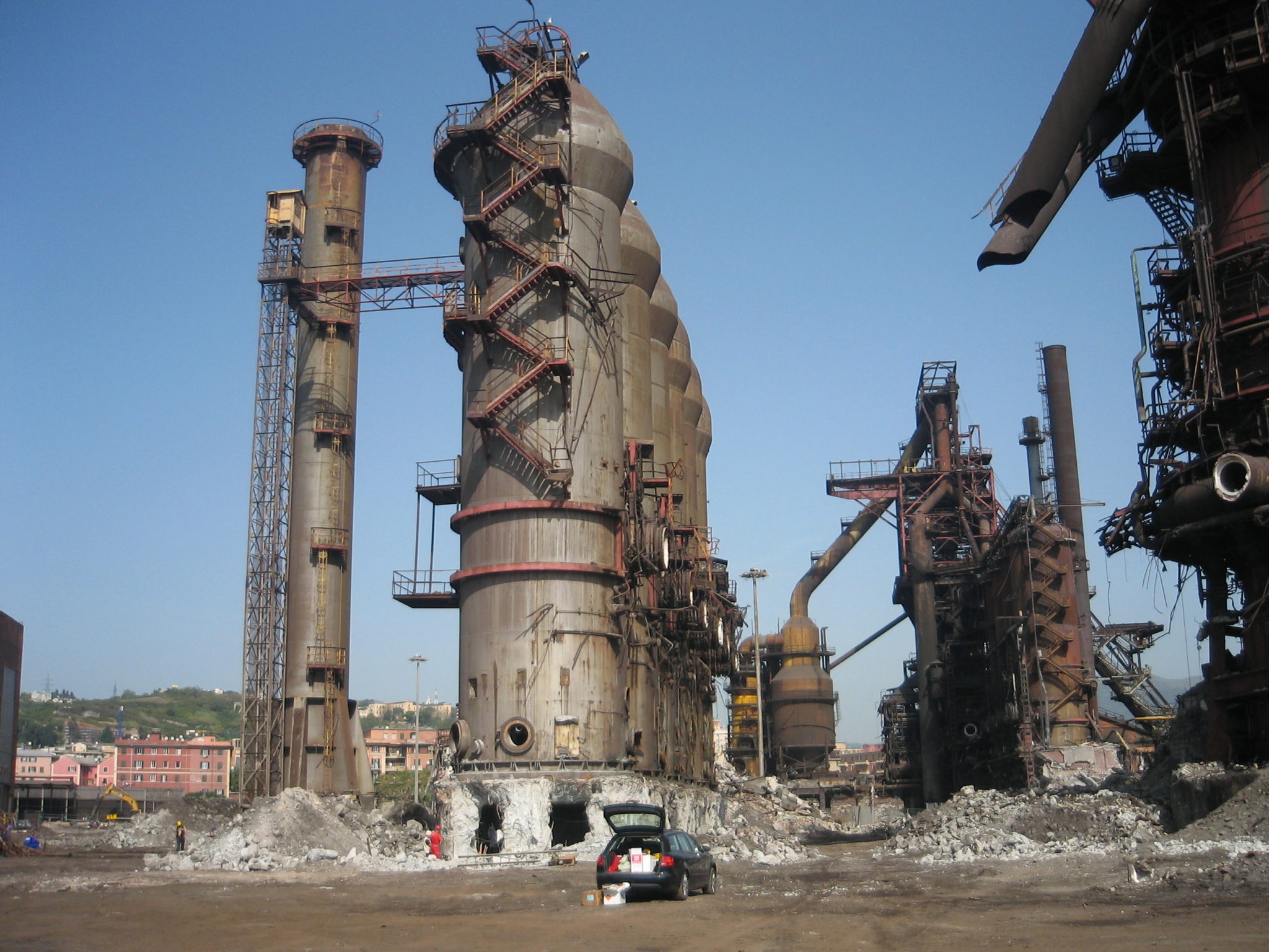 Serie innovativa di abbattimenti presso l’ILVA di Genova Cornigliano. Tutte le strutture erano in acciaio. Di particolare rilievo, l’abbattimento simultaneo di una batteria di 5 Torri Cowper e, precedente assoluto, un Altoforno, l’AFO4 alto oltre 70 metri. Per quest’ultimo intervento si sono utilizzate cariche cave speciali abbinate a cariche tradizionali.