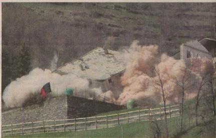Ad Allein (AO), un ex albergo era ubicato a pochi metri dal palazzo municipale. L’edificio era stato costruito in modo irregolare, con pilastri mancanti in punti strategici e rinforzi in zone improbabili. Risultato scarsa affidabilità per la sicurezza con i mezzi meccanici. L’edificio si trovava in quota su un promontorio sotto il quale, a poche decine di metri si trovavano una serie di case di civile abitazione. Nessun detrito e nessun disturbo è stato arrecato dopo l’abbattimento effettuato da Siag.
